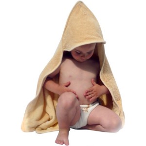 Mit einem Kapuzenbadetuch wird der Kopf des Babys oder Kindes vor Zugluft geschützt.